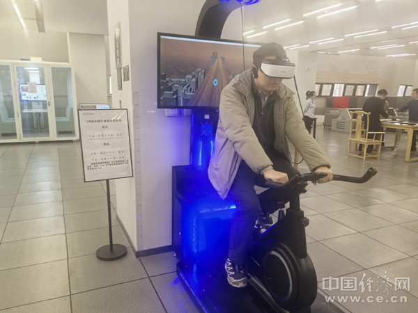 榆林市图书馆内,中国经济网记者正在体验VR项目。(中国经济网记者 邓浩/摄)